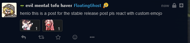 - adding custom emoji reactions!!! we can :hanaPog: at eachother now! it’s truly a christmas miracle
