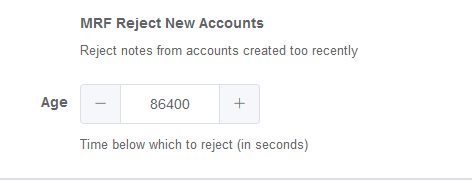 Dealing with new accounts sending you too many sussy baka messages? Purge them. This MRF will reject all messages sent from accounts created within a certain recency.