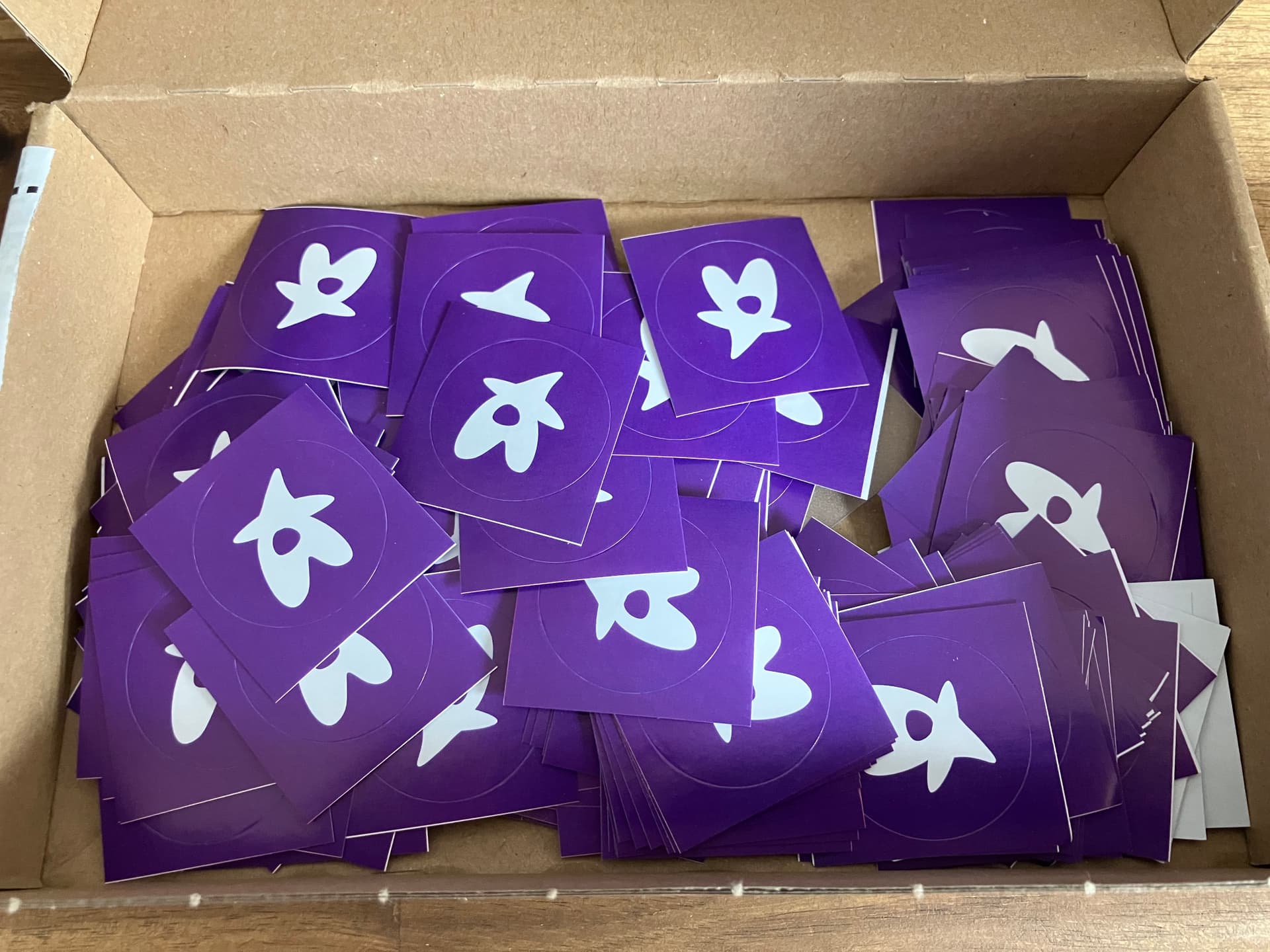 with the kind permission and help from @FloatingGhost, i got a batch of akkoma stickers printed. 250 is apparently quite a lot.