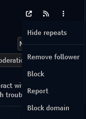 all a user need do is click on the little dropdown on a user card and poof domain blocked