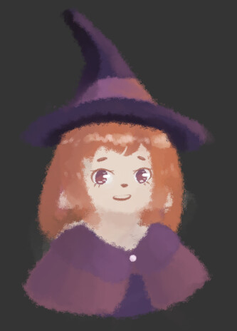 some details remain from my first attempt back in september such as the orange hair, but for the most part its a distinct character unrelated to other mascots, and orange + dark purple is also spooky month colors and, i mean, witchy + spooky month colors, works for me